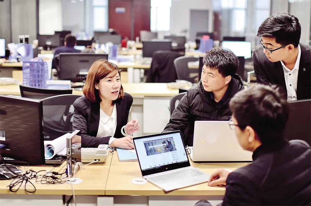 3月22日,在石家莊科技大市場河北中科合創科技服務有限公司,工作人員正在整合梳理一批科技成果評價資料。