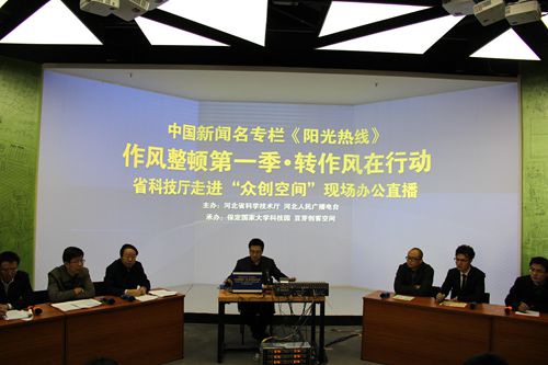 2016年2月29日,省科技廳黨組副書記、副廳長郭玉明帶領高新技術發展及產業化處、中小企業創新資金管理中心有關負責同志走進保定國家大學科技園“豆芽創客空間”,舉辦“轉作風·新春走進眾創空間”活動,并依托河北電臺“陽光熱線”欄目,以“轉作風,積極引導、扶持‘眾創空間’發展”為主題與創業導師、創業者代表近距離、零障礙、無縫隙的交流對接,傾聽意見,解決難題,現場辦公。